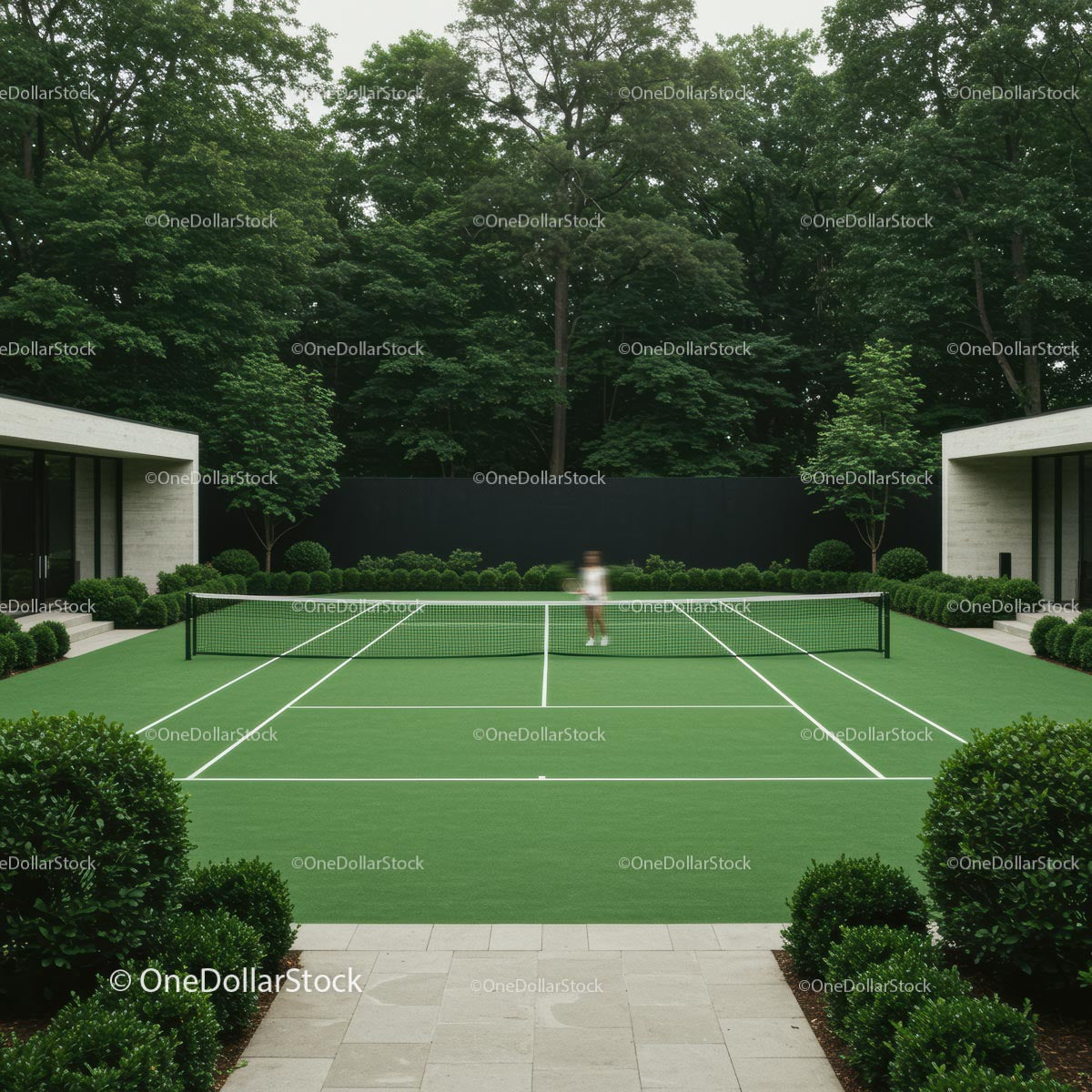 Luxury Private Tennis Court Surrounded by Lush Green Gardens
