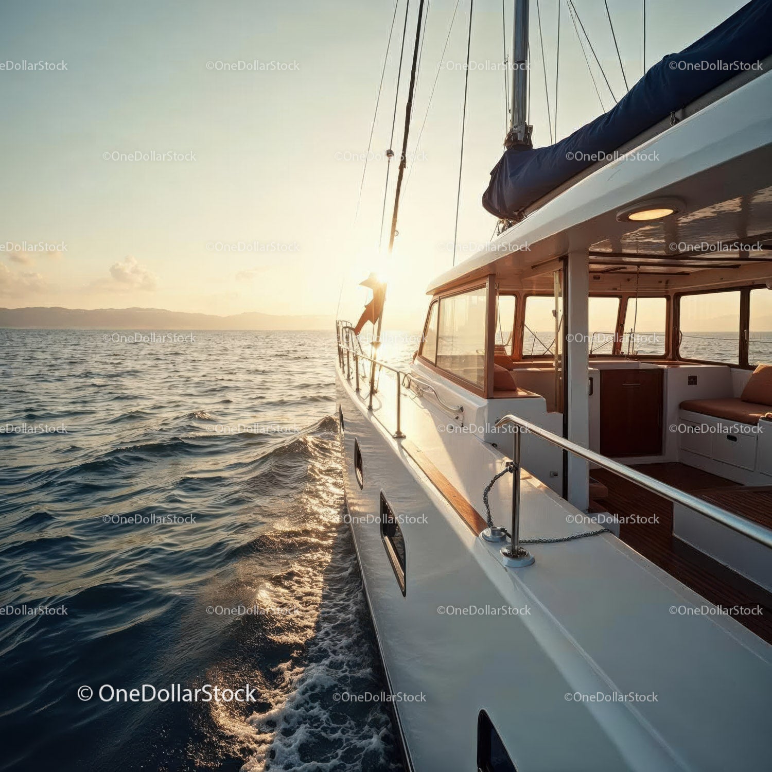 Luxury Sailing Yacht on Ocean at Sunset with Calm Seas