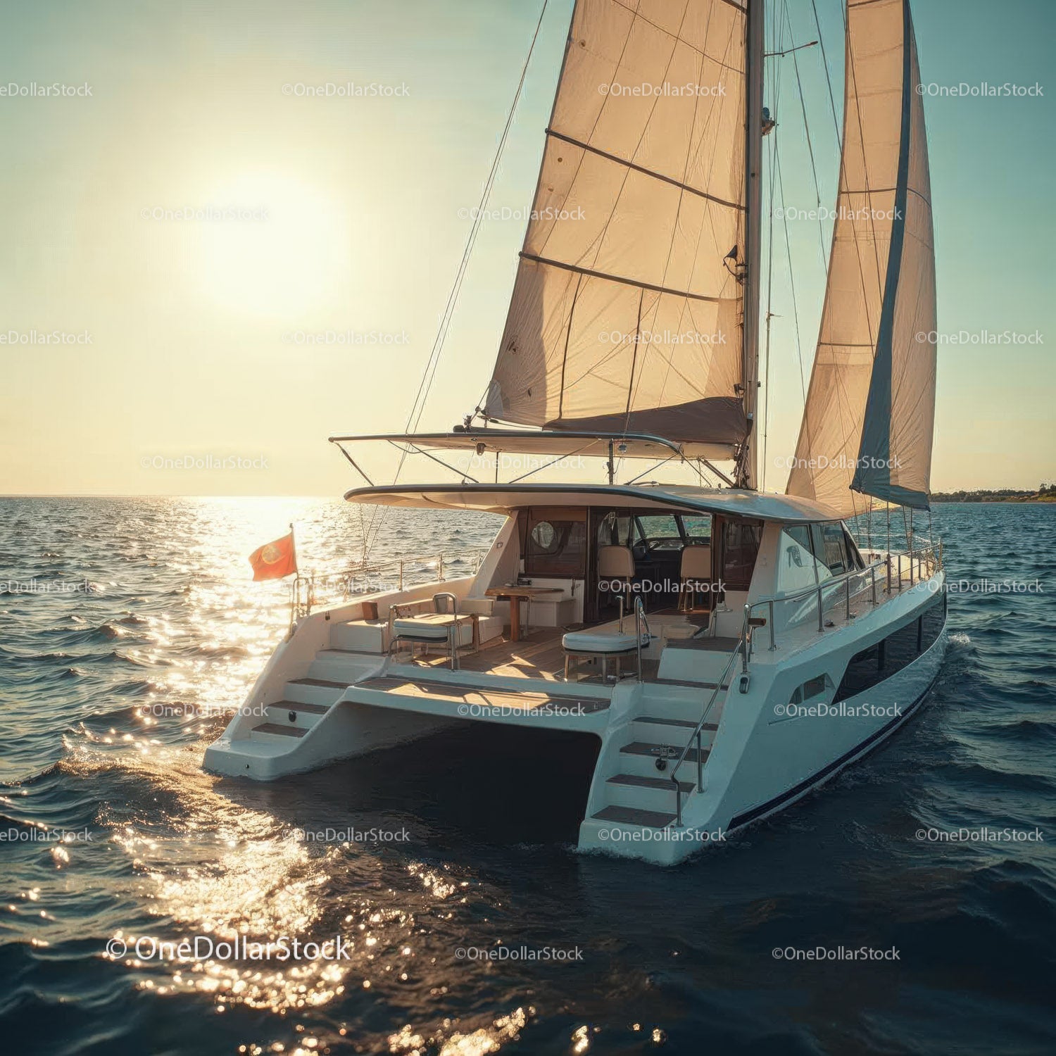 Luxury Sailing Yacht with Beige Sails on Calm Ocean