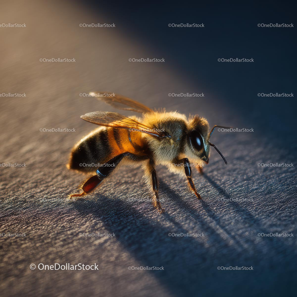 Macro Shot of Honeybee in Golden Light