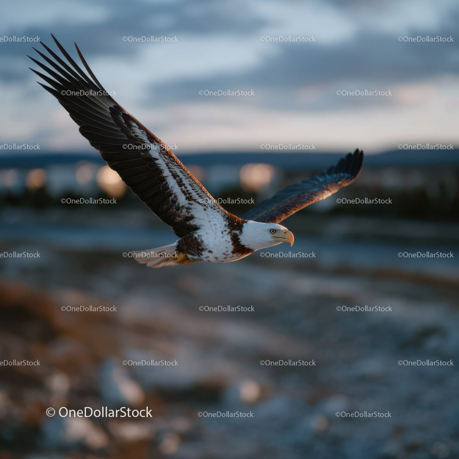 Majestic Bald Eagle Flying Over Ocean During Sunset