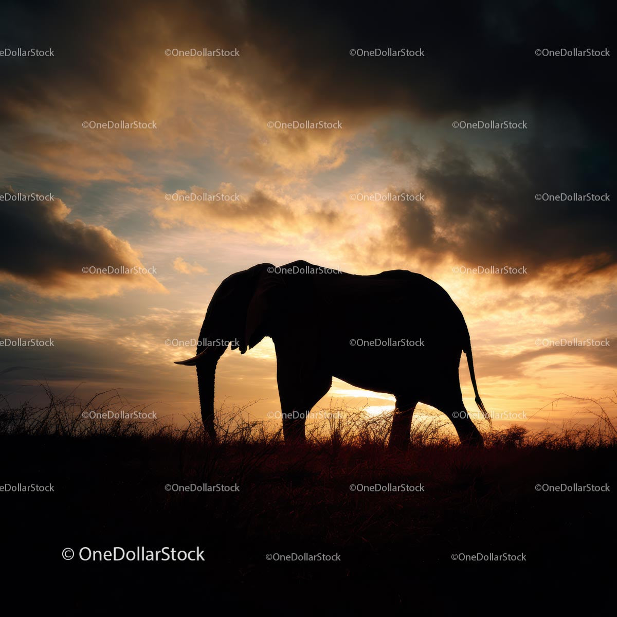Majestic Elephant Silhouette at Sunset in the Savannah