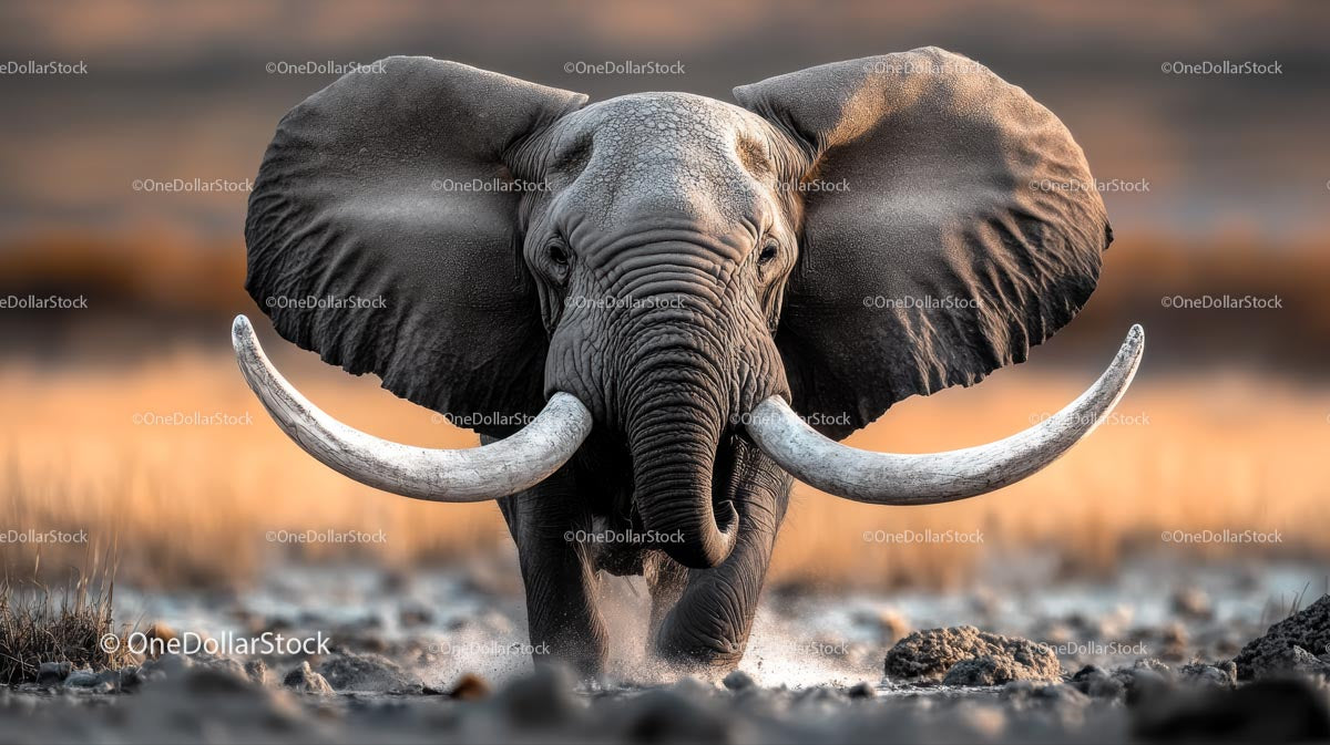 Majestic Elephant with Powerful Tusks in the African Savannah