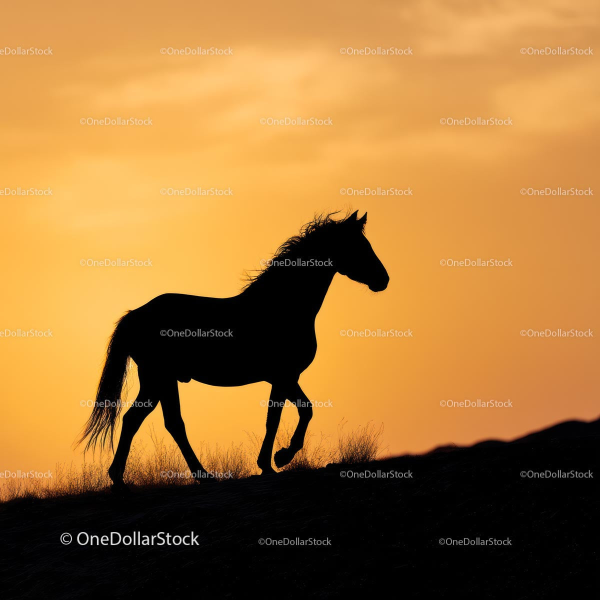 Majestic Horse Silhouette in an Orange Sunset