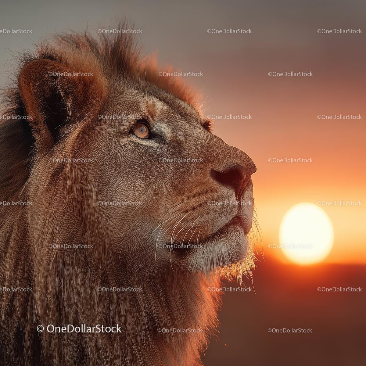 Majestic Lion Gazing Into the Sunset on the Savanna