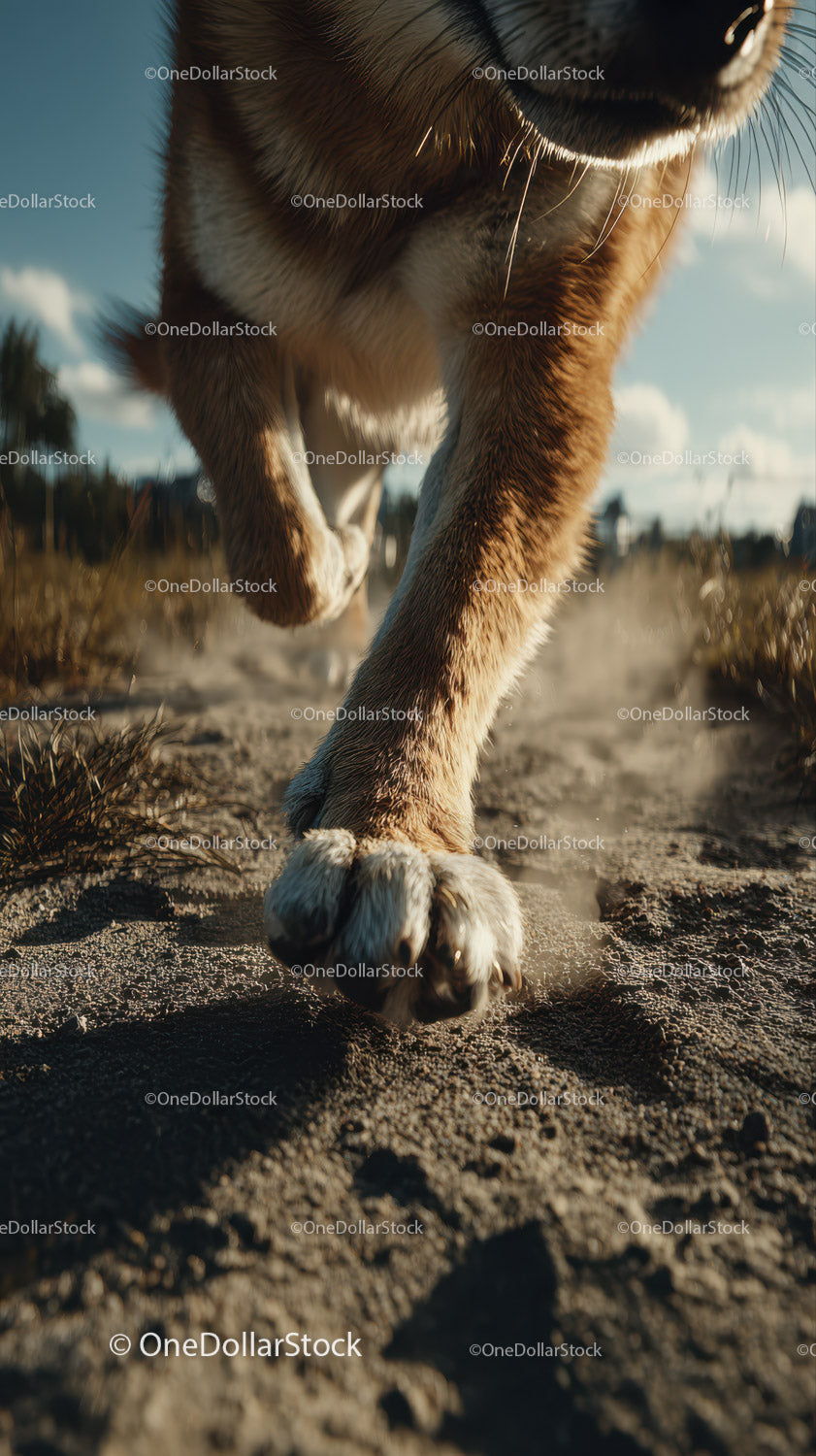 Majestic Lion with Powerful Paw Stepping on Dry Soil in the Wild