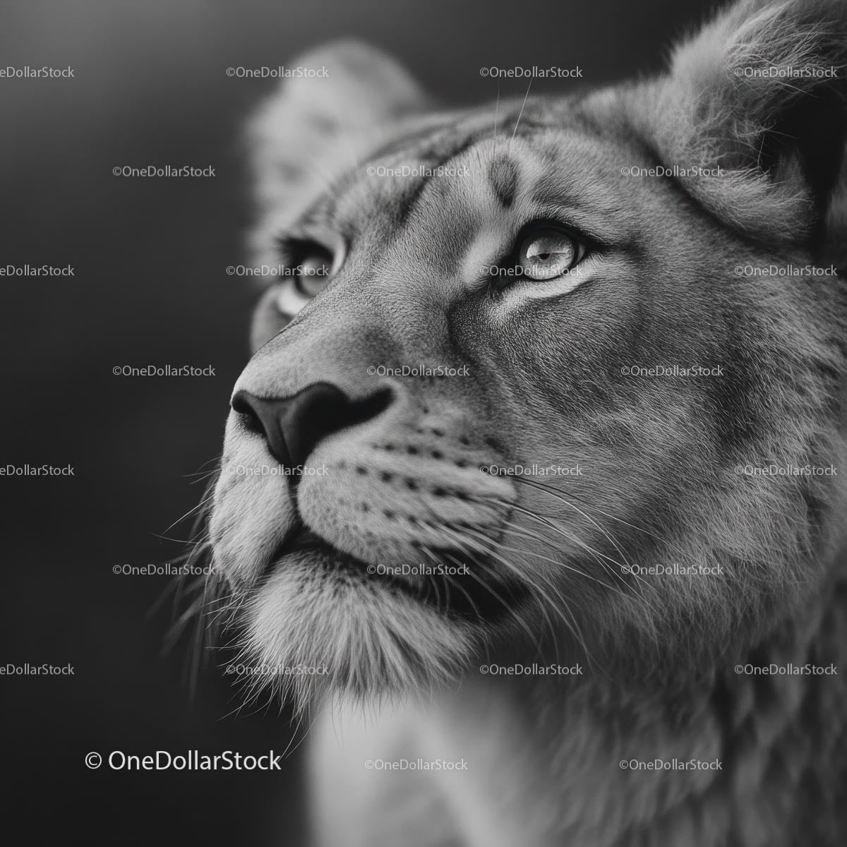 Majestic Lioness Staring Steadfastly in Black and White