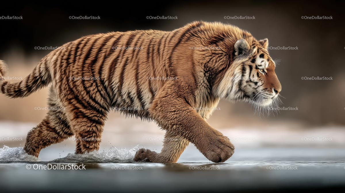 Majestic Tiger Crossing Icy Water in Natural Habitat