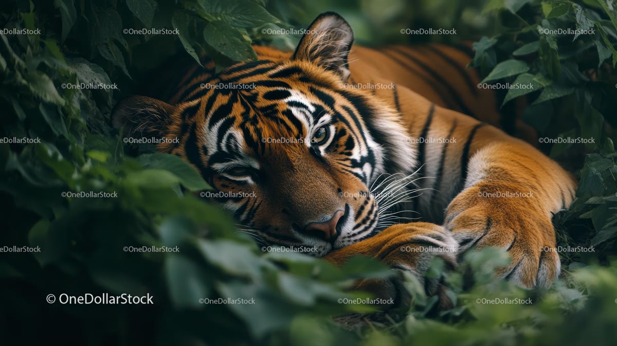 Majestic Tiger Resting Amidst Lush Jungle Foliage