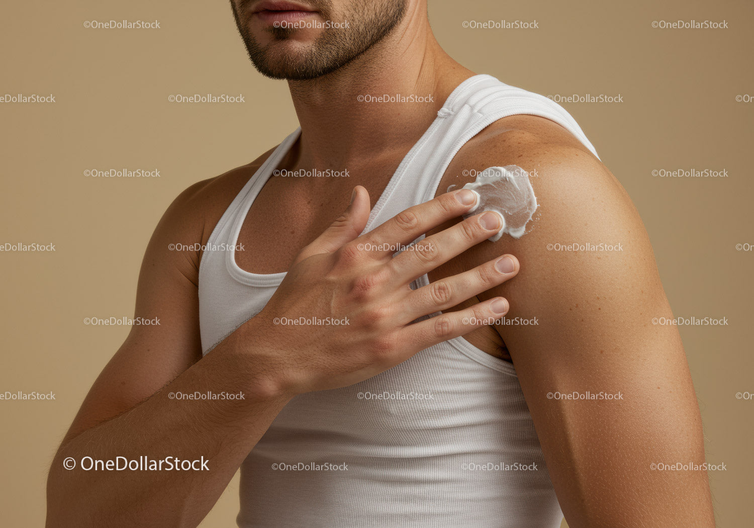 Man Applying Sunscreen on Shoulder for Sun Protection