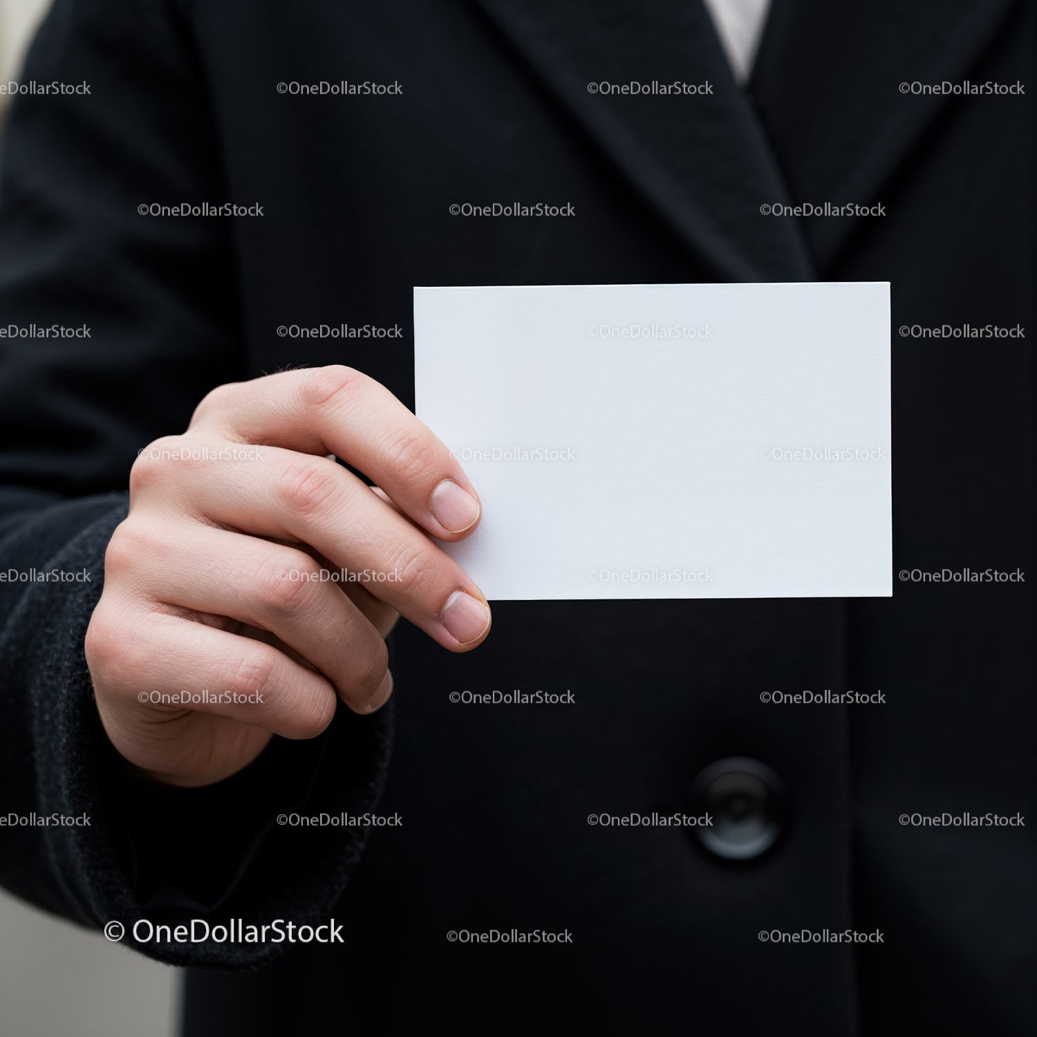 Man Holding Blank White Business Card Close Up