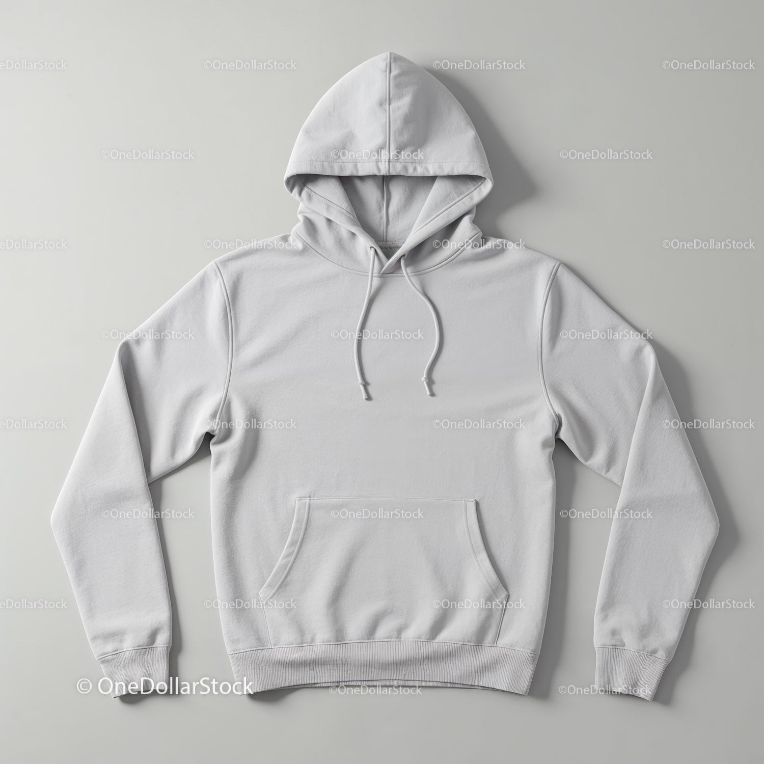 Minimalist White Hoodie Laid Flat on Gray Surface