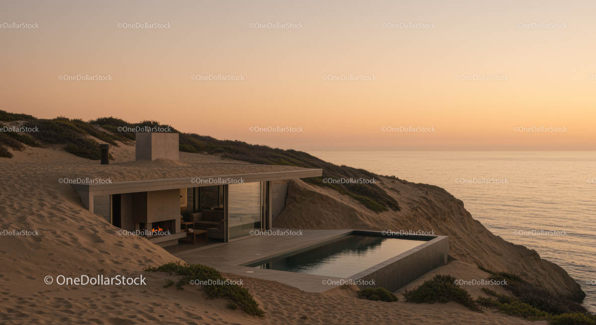 Modern Cliffside Villa Overlooking Ocean at Sunset