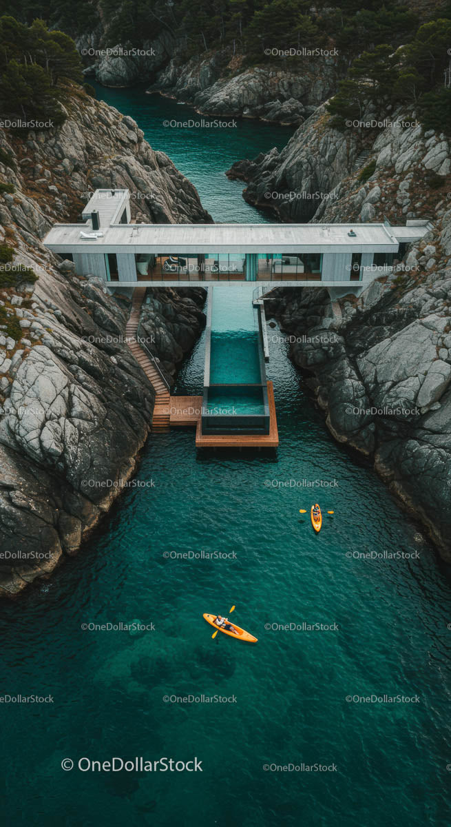Modern Coastal Villa with Kayaks on Turquoise Waters