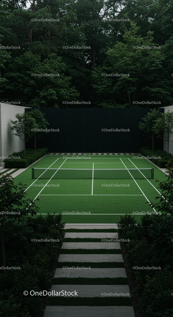 Modern Outdoor Tennis Court Surrounded by Greenery