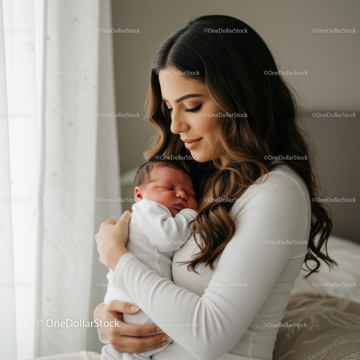 Mother Gently Holding Newborn Baby in Cozy Setting