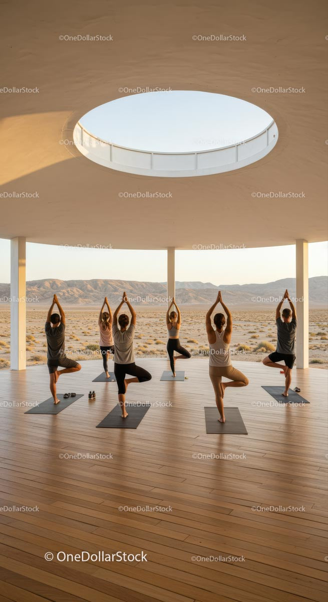 Outdoor Yoga Session in Modern Pavilion with Desert View