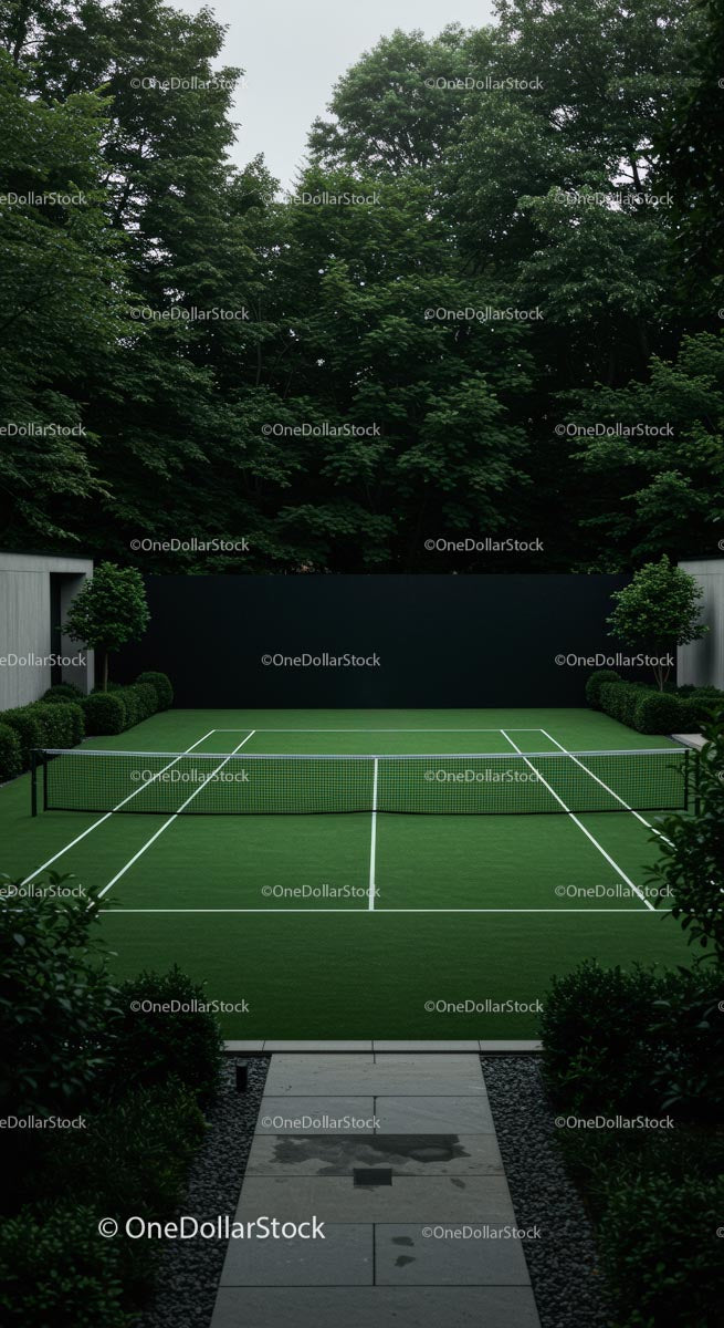Peaceful Outdoor Tennis Court Surrounded by Lush Greenery