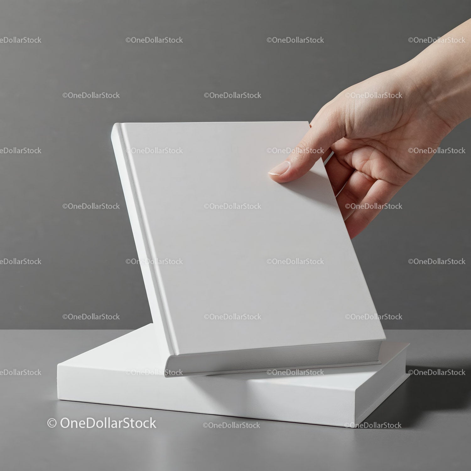 Person Holding Blank White Book on Gray Surface