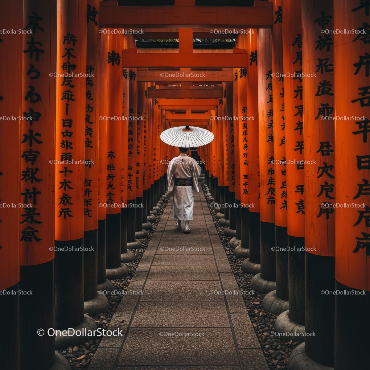 Person Walking Through Fushimi Inari Taisha Torii Gates