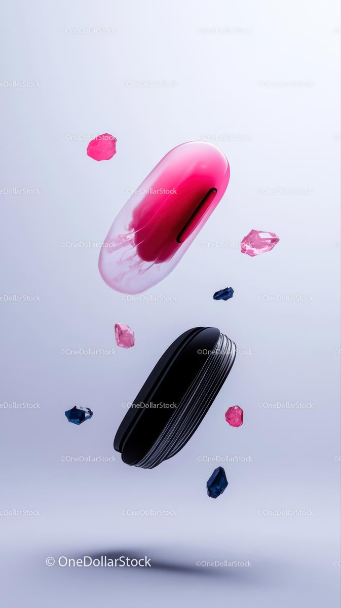 Pink and Black Menstrual Pads Floating with Colorful Crystals