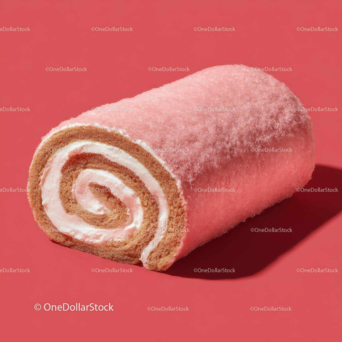 Pink Dessert Roll with Creamy Filling on Pink Background