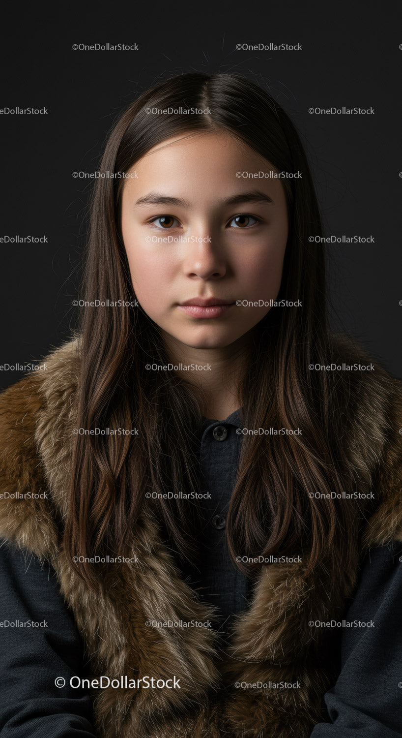 Portrait of a Confident Young Girl with Brown Hair in Fashionable Coat