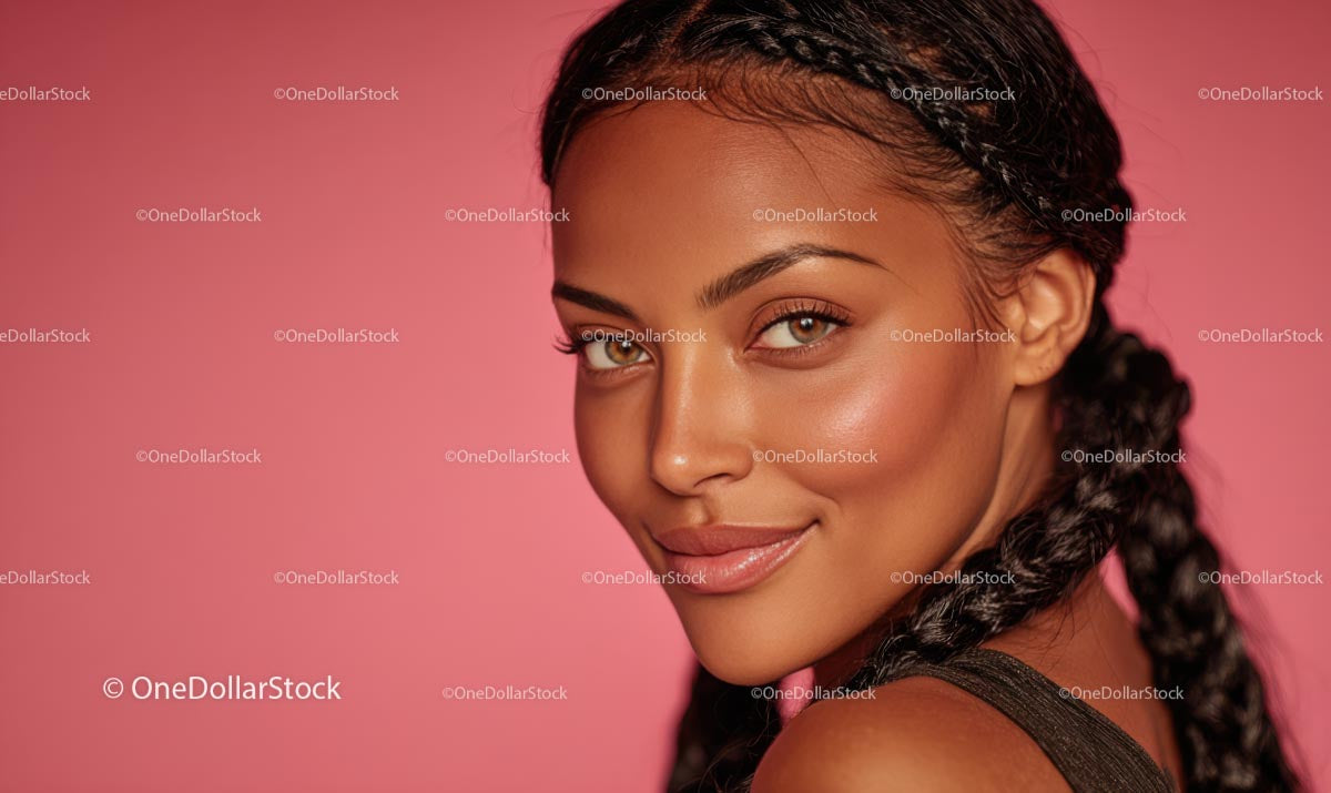 Portrait of Smiling Woman with Braided Hair on Pink Background