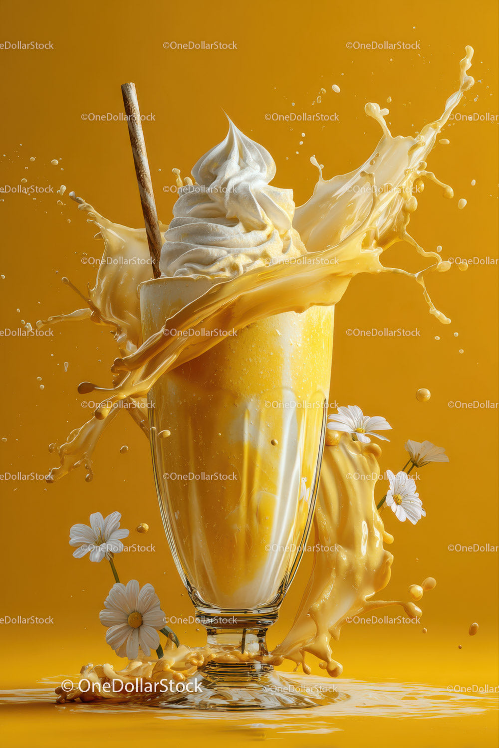 Refreshing Lemon Drink with Cream Splash and Lemon Slices