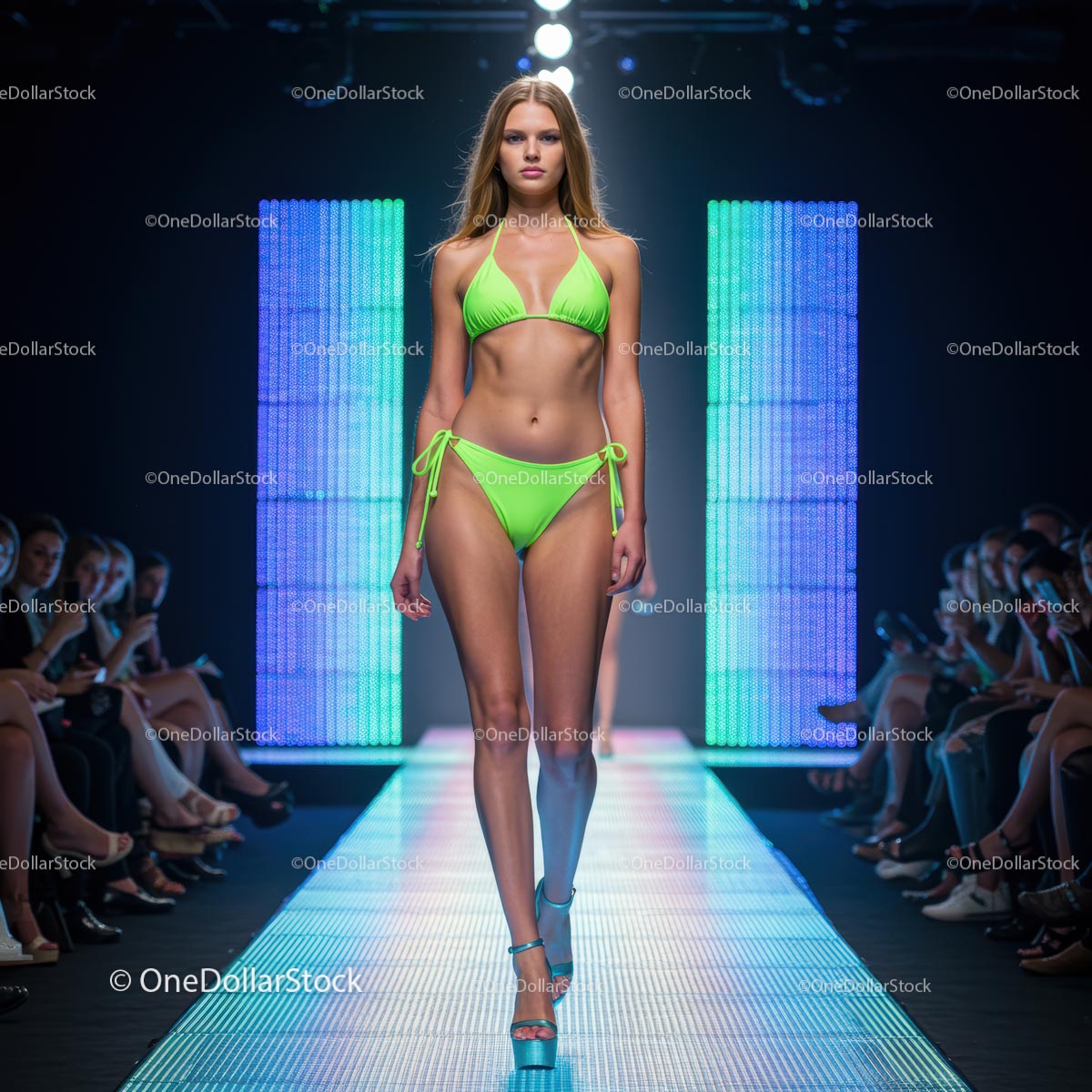 Runway Model in Vibrant Green Bikini at Fashion Show