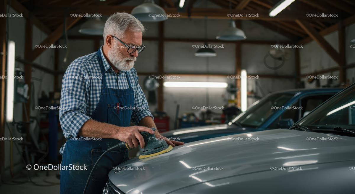 Senior Craftsman Polishing Car in Charming Workshop