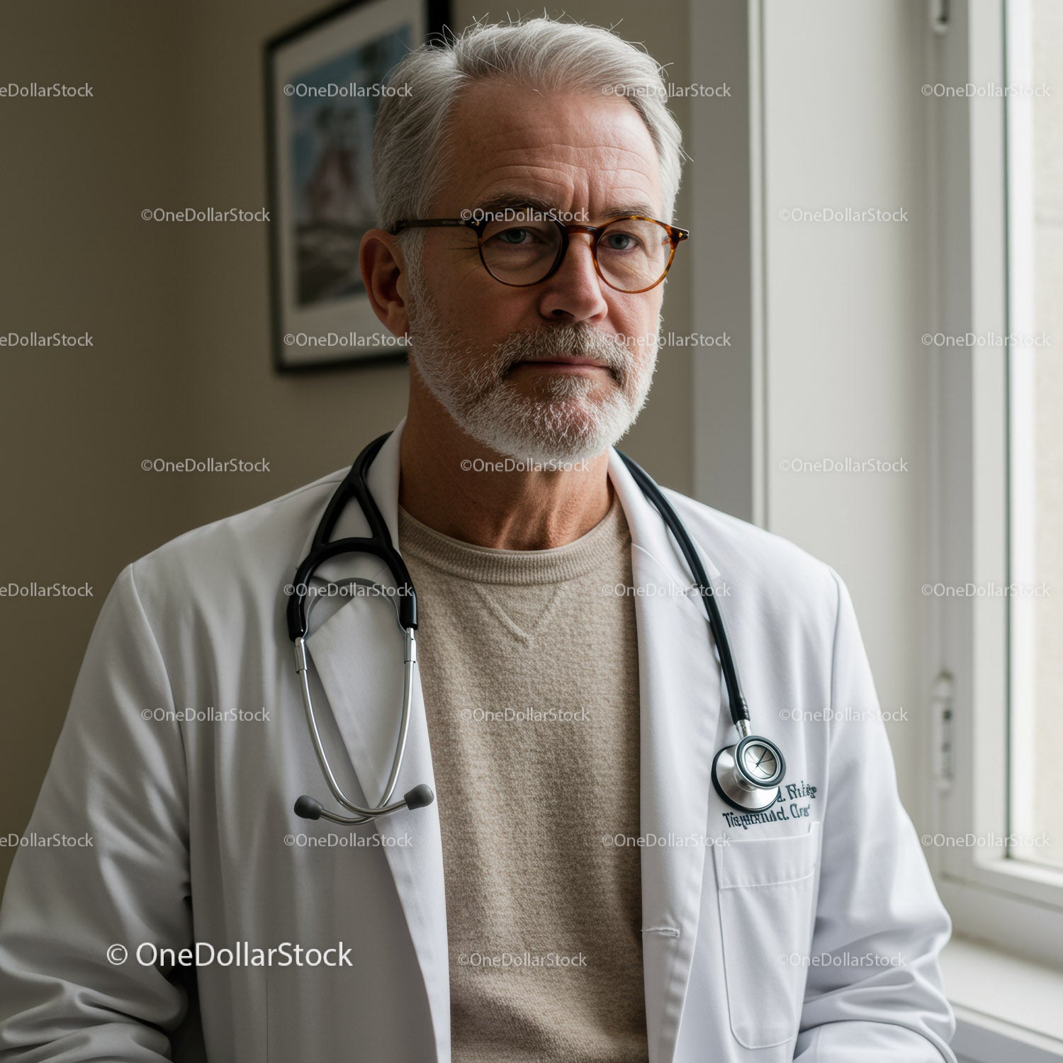 Senior Doctor with Stethoscope in Medical Clinic Setting