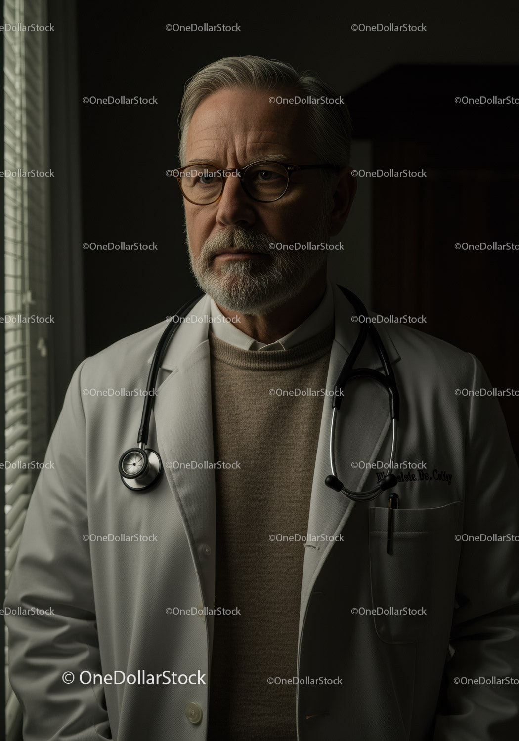Senior Male Doctor in White Lab Coat and Stethoscope in Clinical Setting