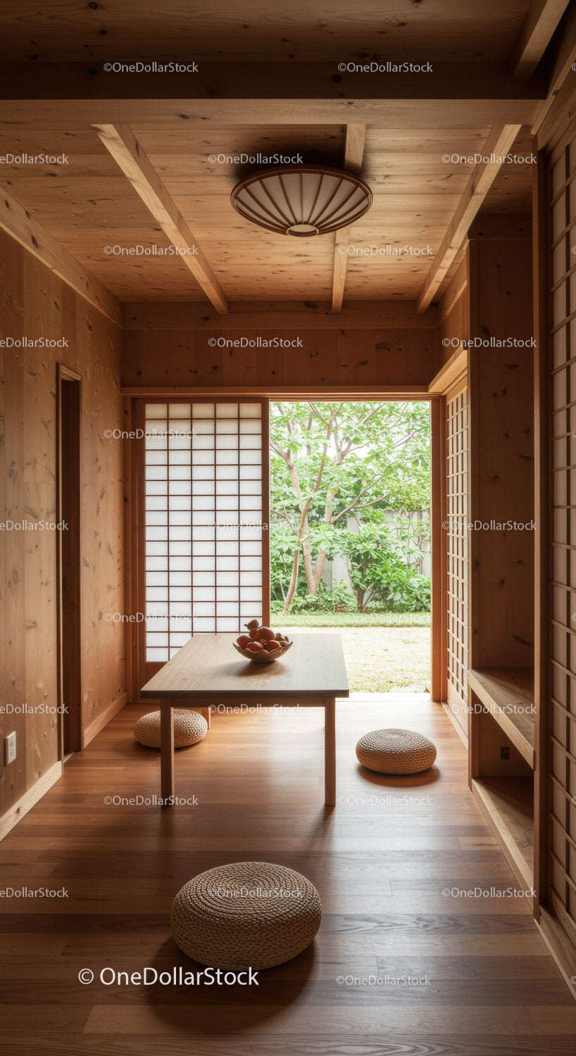 Serene Traditional Japanese Room with Shoji Screens and Wooden Decor