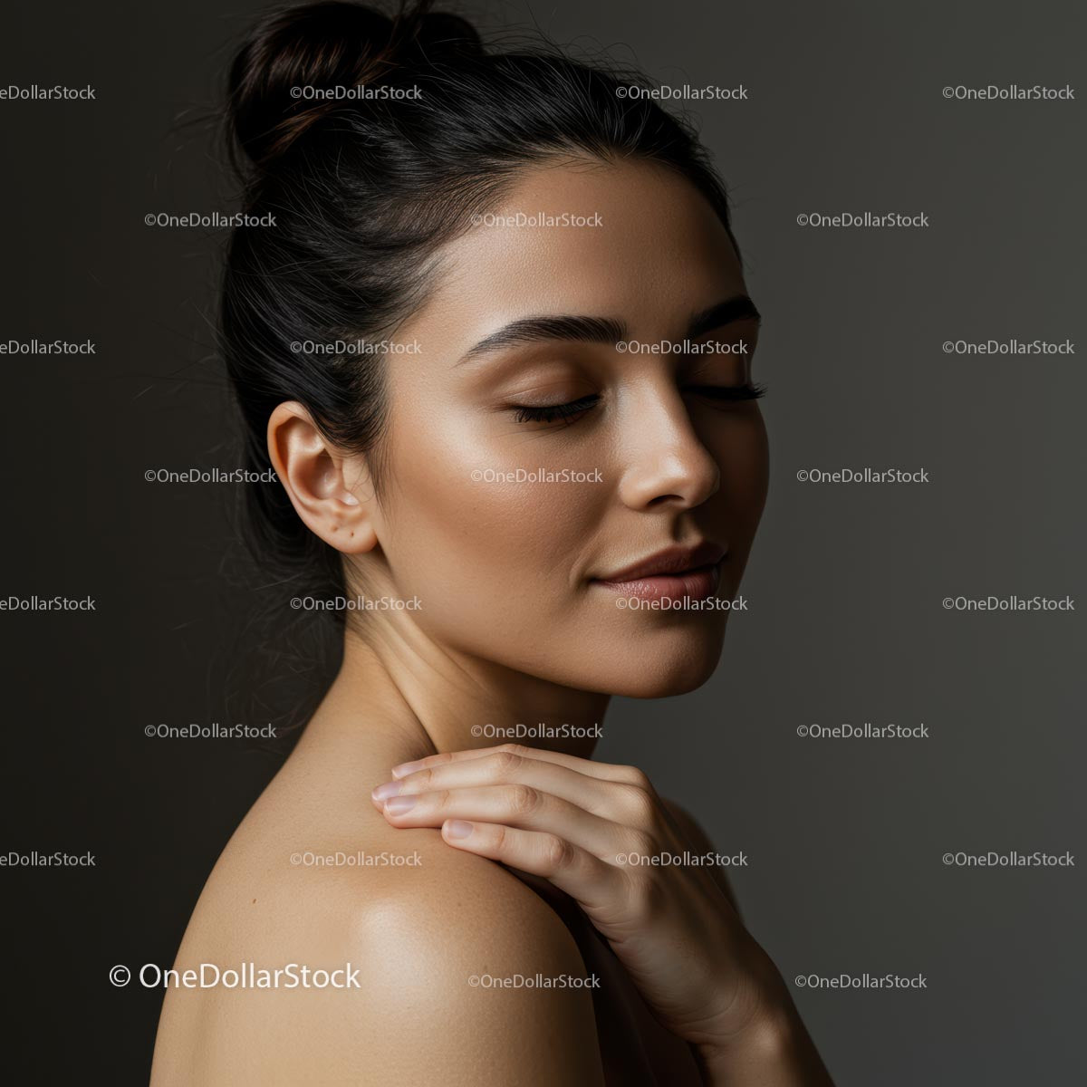Serene Woman with Closed Eyes in Minimalistic Portrait