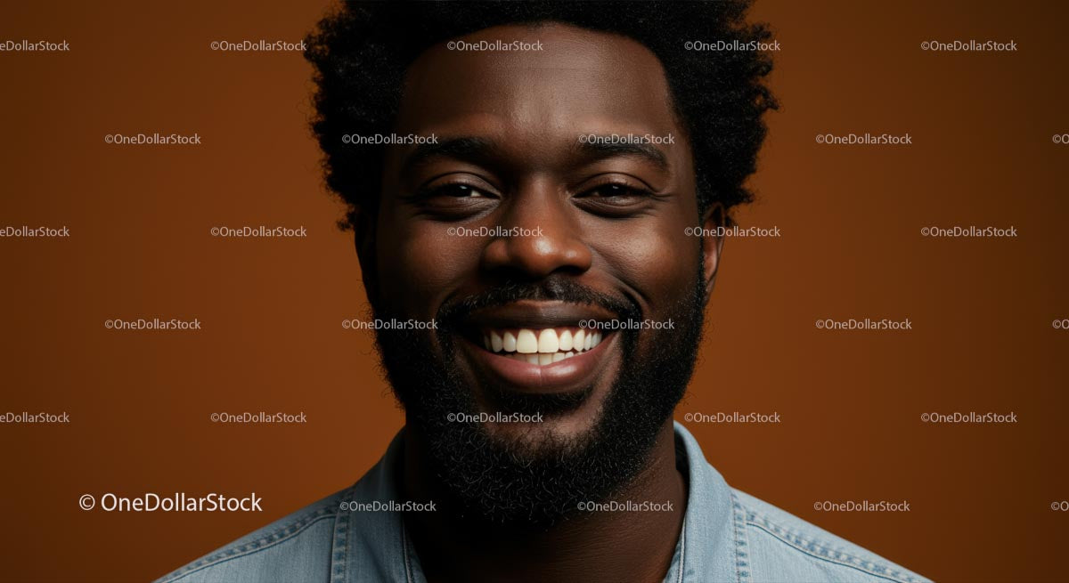 Smiling Portrait of a Man in Denim Against Brown Background (12 Images)