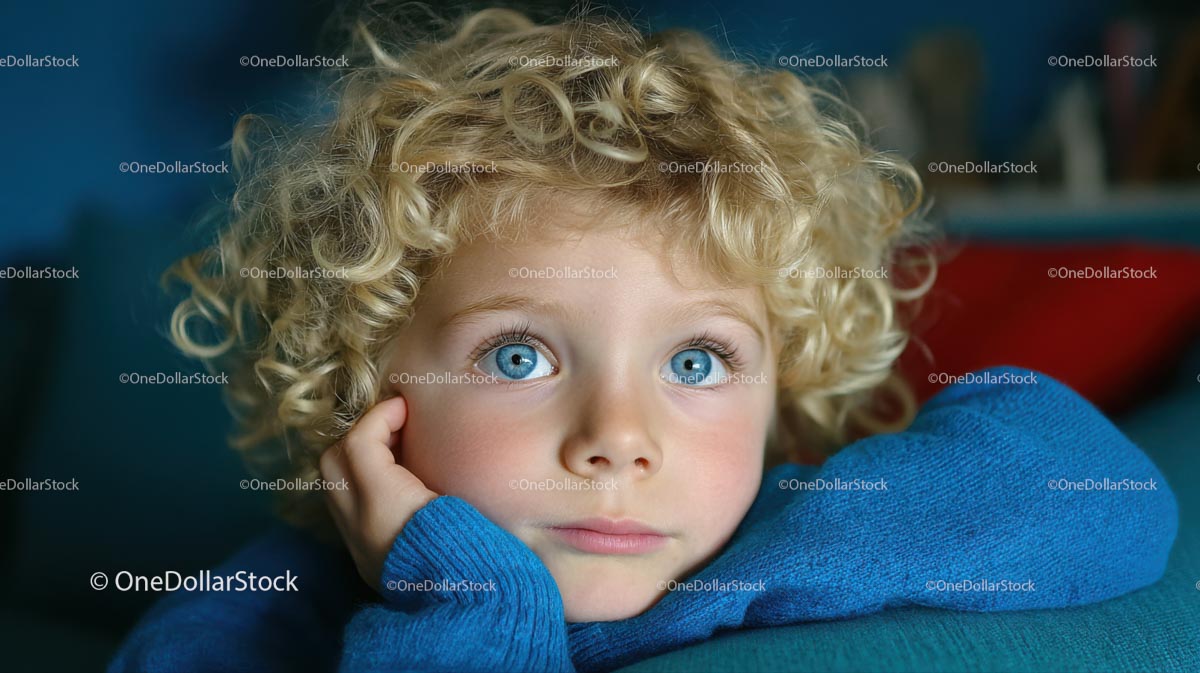 Thoughtful Child with Curly Hair Relaxing Indoors