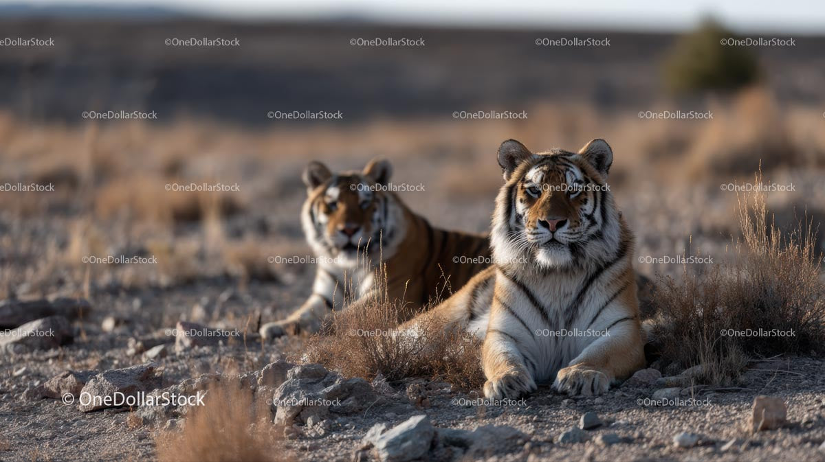 Tigers Resting Gracefully in Arid Savannah Landscape