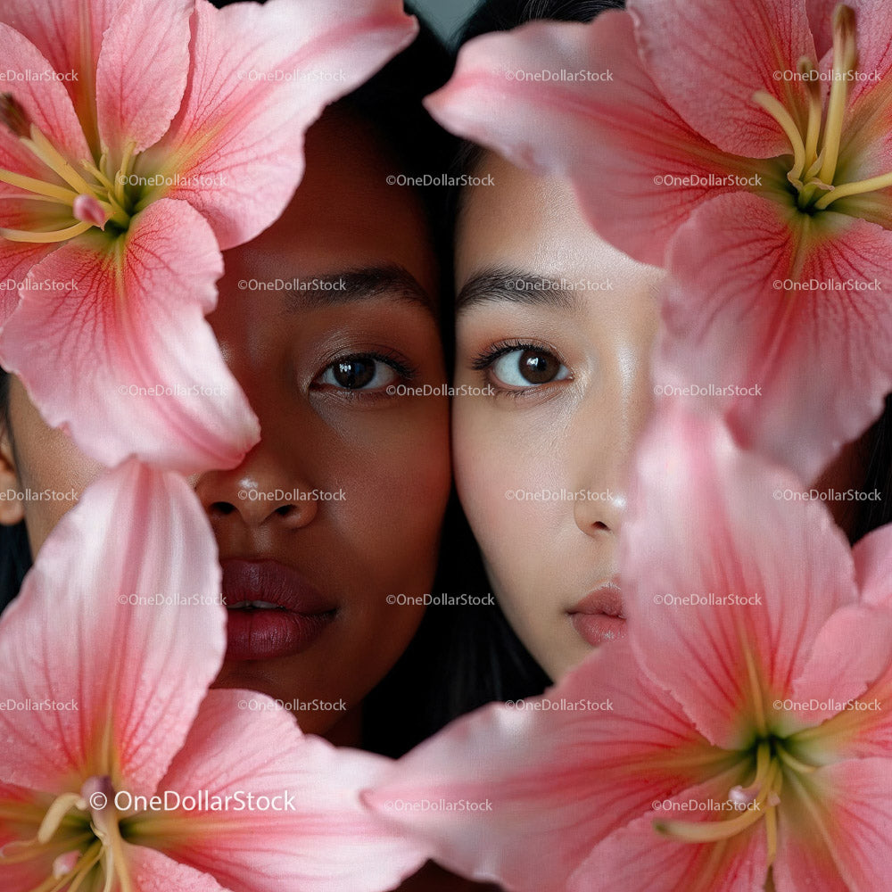 Two Women Framed by Delicate Pink Lilies (17 Images)