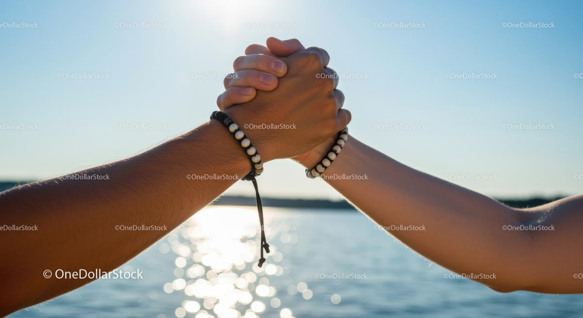 Unity and Friendship with Handshake by the Sea
