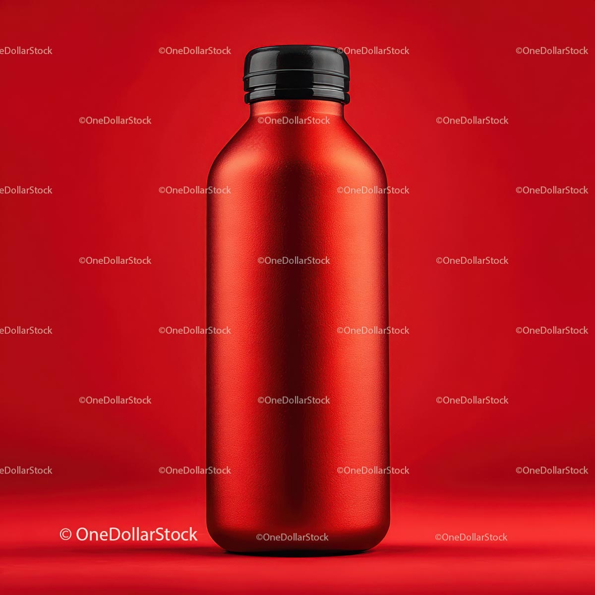 Vibrant Red Metal Bottle on Bold Red Background