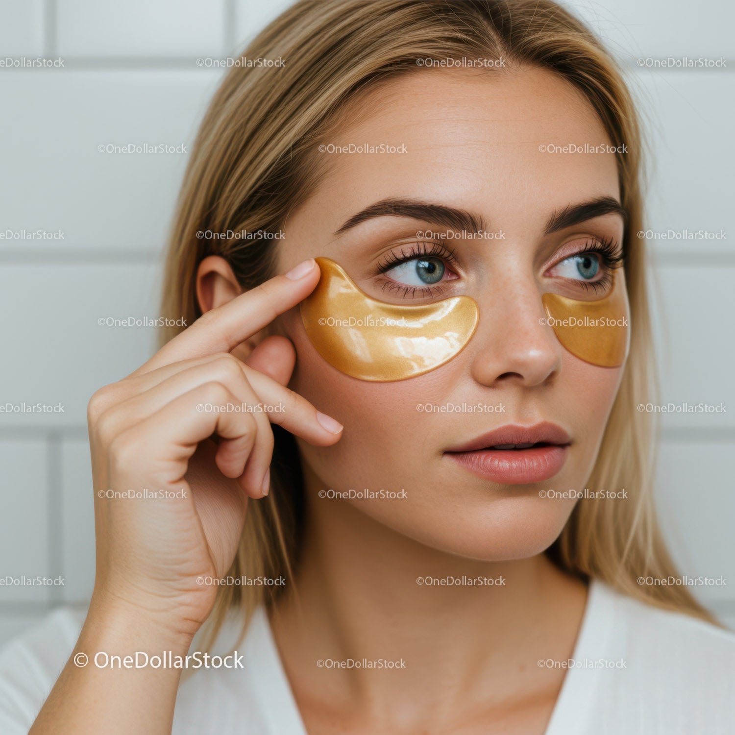 Woman Applying Gold Under-Eye Patches for Rejuvenation and Relaxation