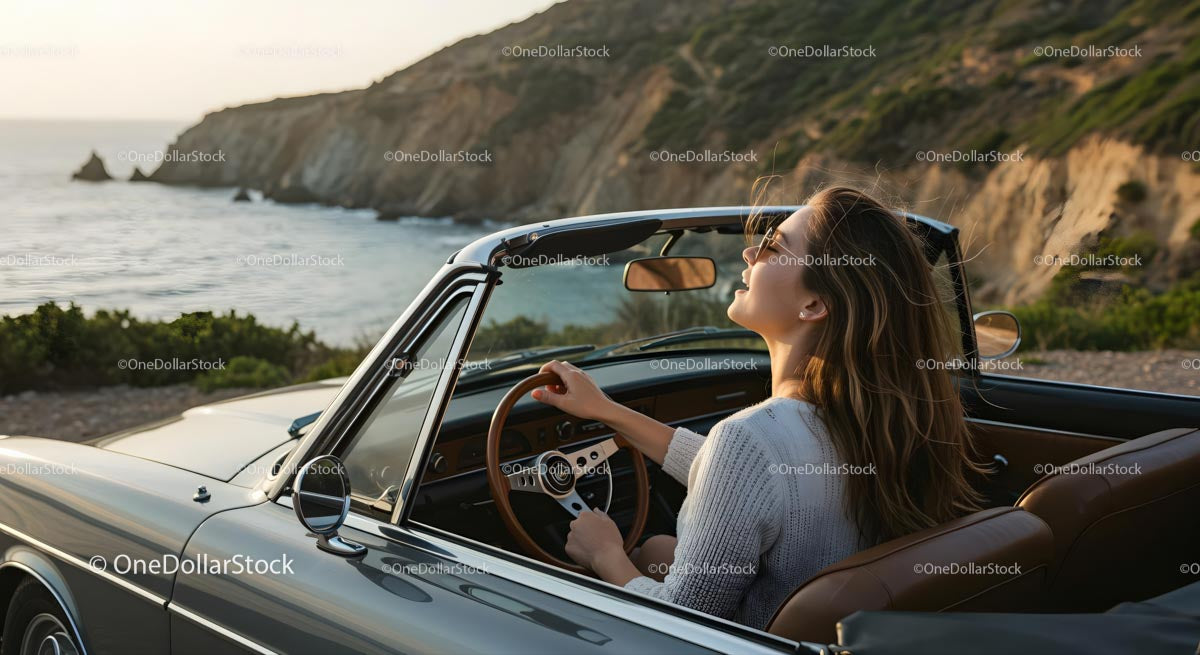 Woman Enjoying Scenic Coastal Drive in Convertible