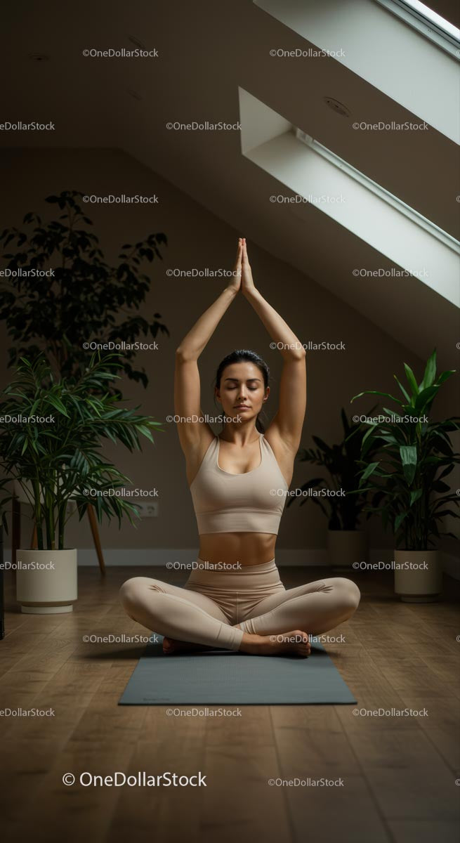 Woman Meditating in Serene Indoor Space with Plants
