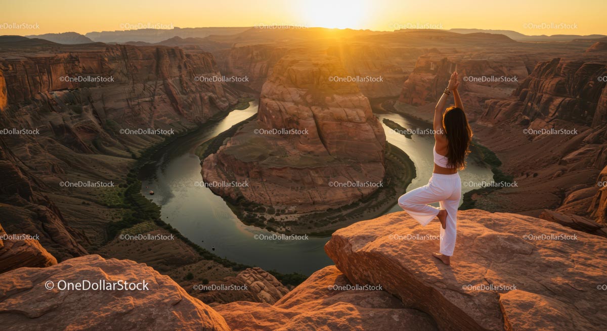 Woman Practicing Yoga at Scenic Canyon Sunset