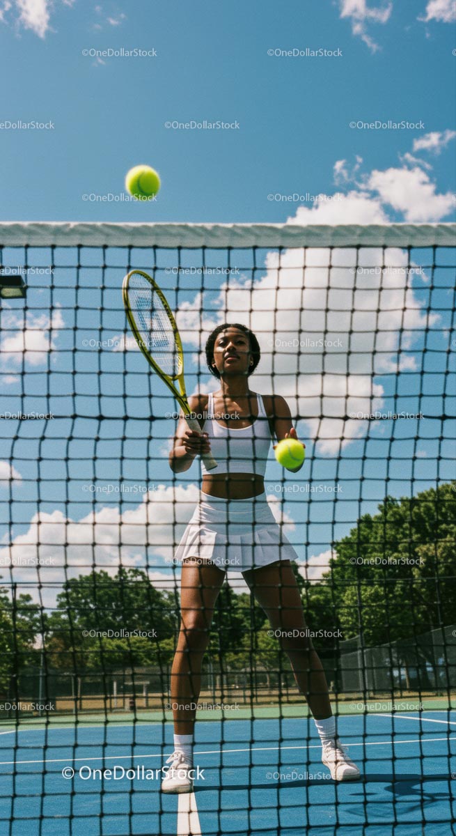 Woman Tennis Player at Outdoor Court Ready to Serve