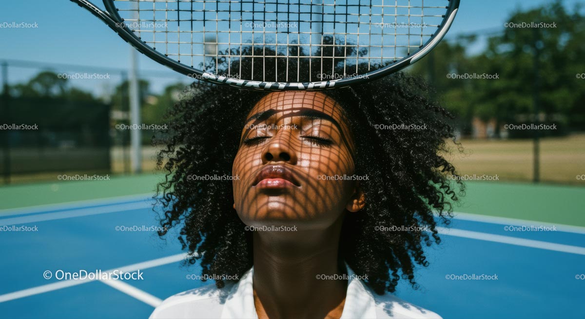 Woman with Afro Hairstyle on Tennis Court in Sunlight