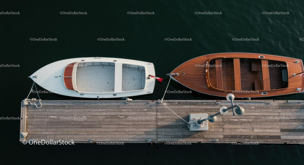 Wooden and White Boats Docked at a Marina Aerial View