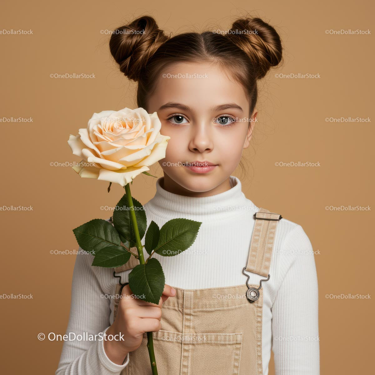 Young Girl Holding a Beautiful Cream Rose Portrait