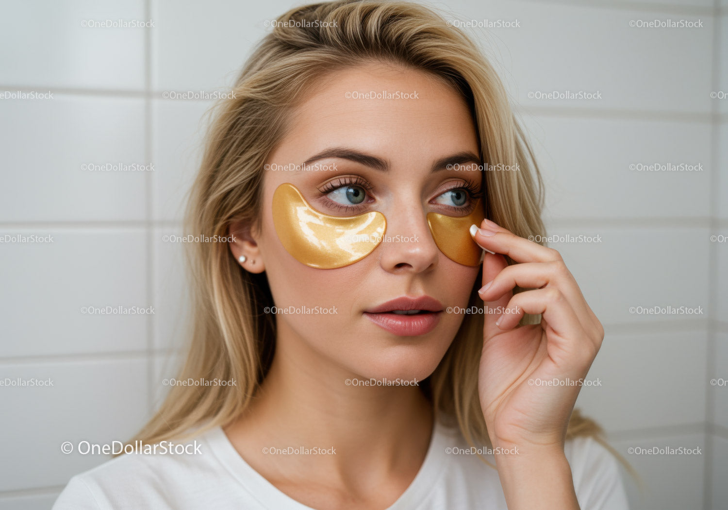 Young Woman Applying Gold Eye Masks for SkinRejuvenation